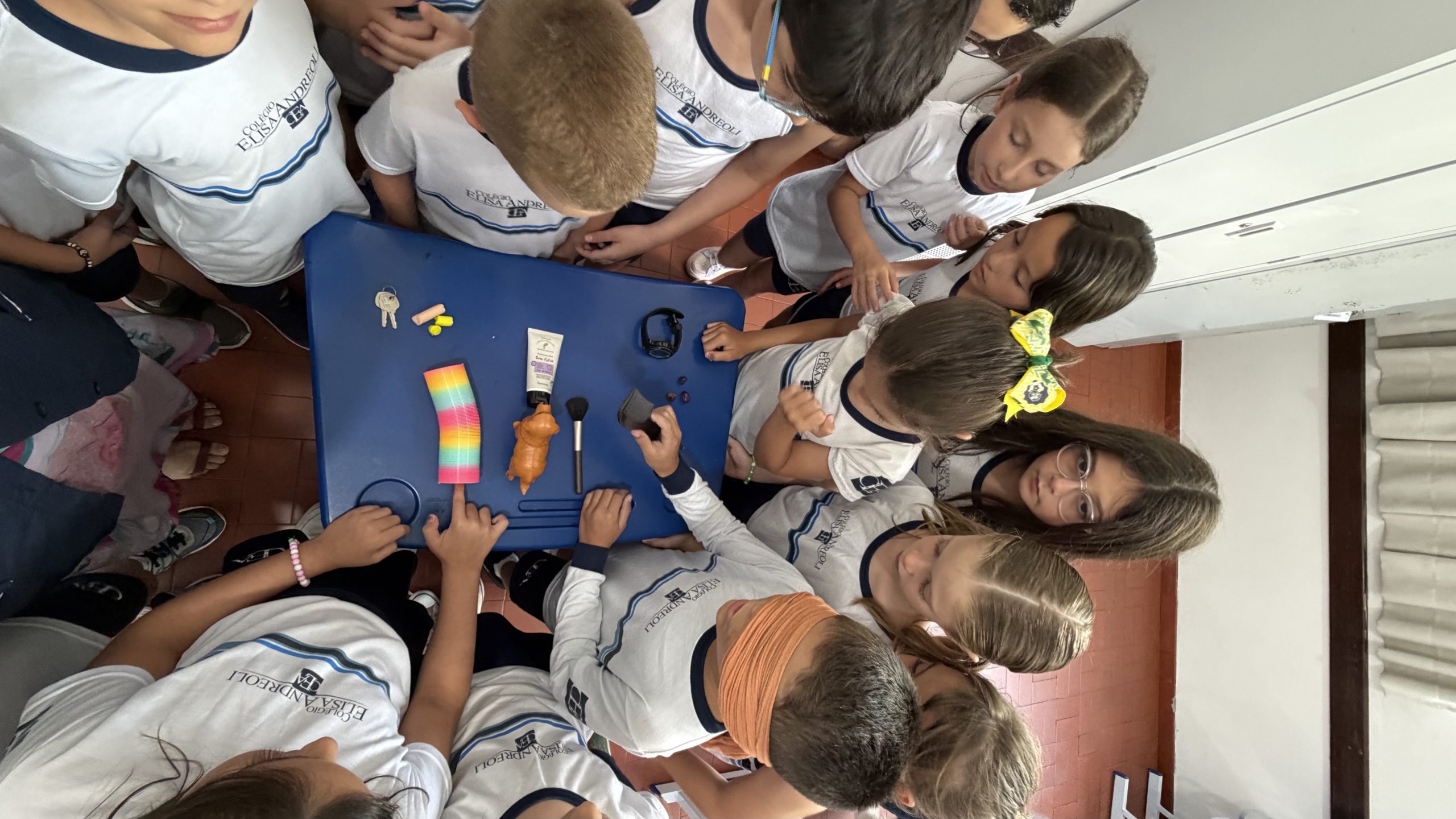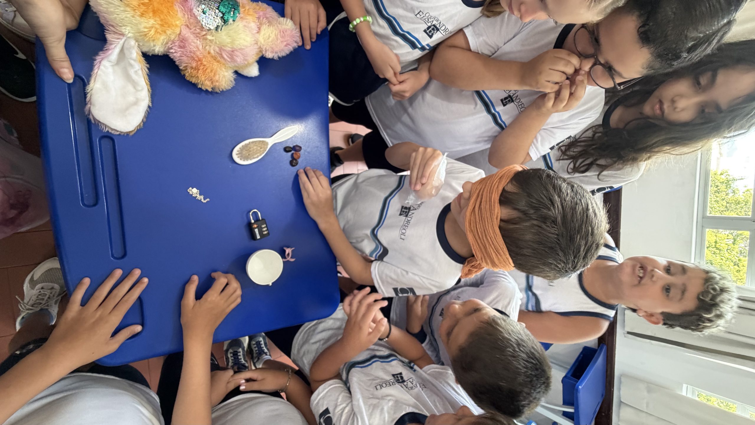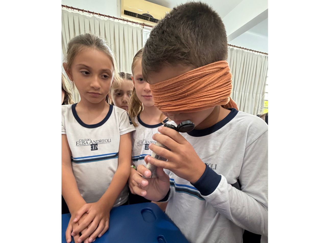 Durante a atividade desenvolvida em sala, estimulamos os cinco sentidos por meio de experiências práticas nas atividades diárias e no reconhecimento de objetos. Os alunos participaram com curiosidade e envolvimento, explorando texturas, sons, cheiros e formas. Ao utilizarmos a venda nos olhos, proporcionamos uma vivência significativa sobre a deficiência visual, incentivando a empatia, o respeito e a colaboração entre os colegas para que todos conseguissem realizar a tarefa com segurança e confiança.