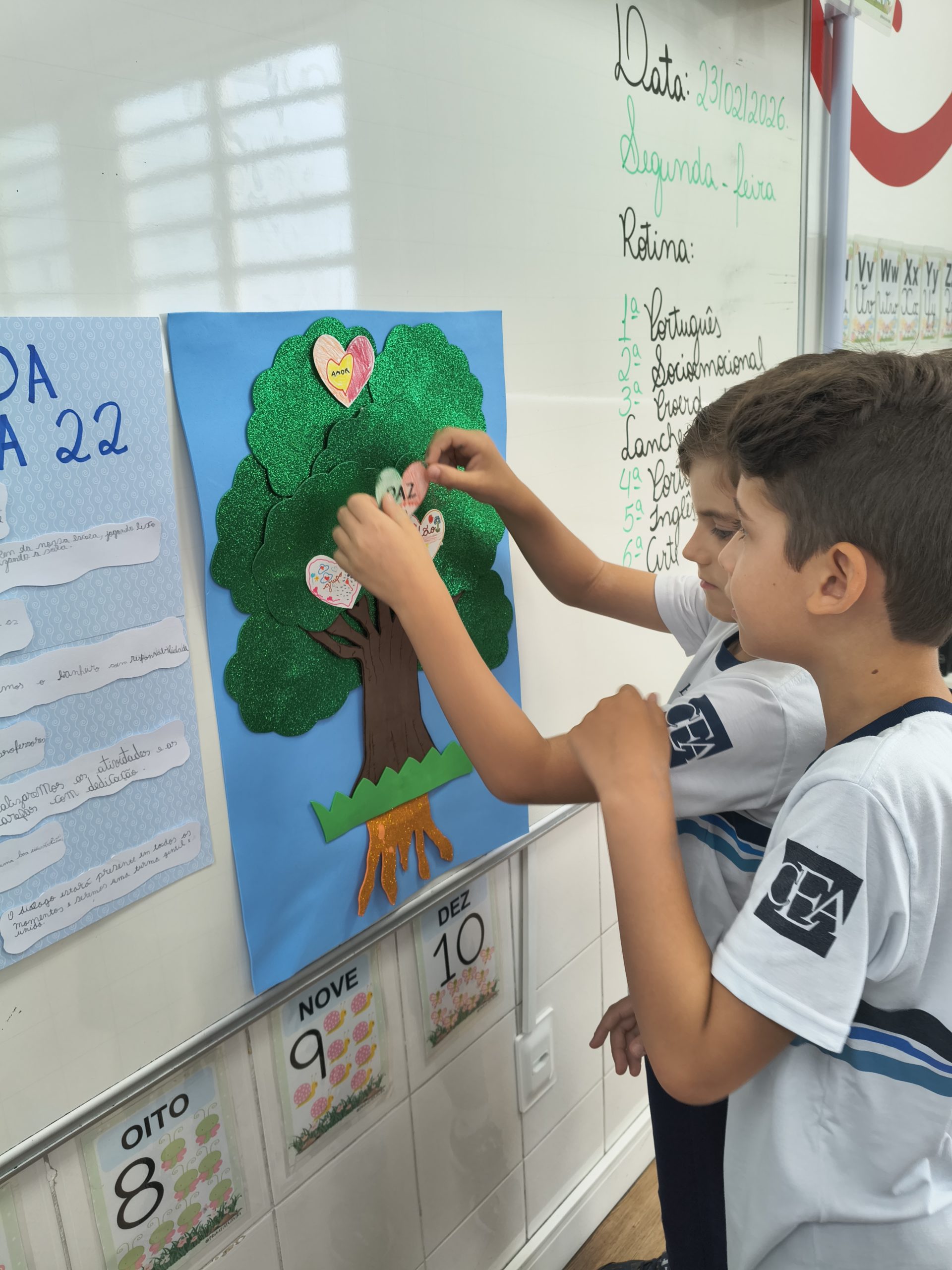 Na disciplina de Socioemocional, a turma 22 participou de uma reflexão sobre as partes de uma árvore, enfatizando a importância de cada uma para o seu crescimento saudável. Neste contexto, aprofundamos nossos conhecimentos acerca dos 7 hábitos, que são essenciais tanto na vida escolar quanto em outros ambientes da nossa vivência. Em um trabalho colaborativo, construímos juntos a nossa árvore dos sete hábitos. Em duplas, os alunos dialogaram e selecionaram uma palavra que servirá como guia para nossas aulas, simbolizando os valores que desejamos cultivar em nossa jornada educacional.