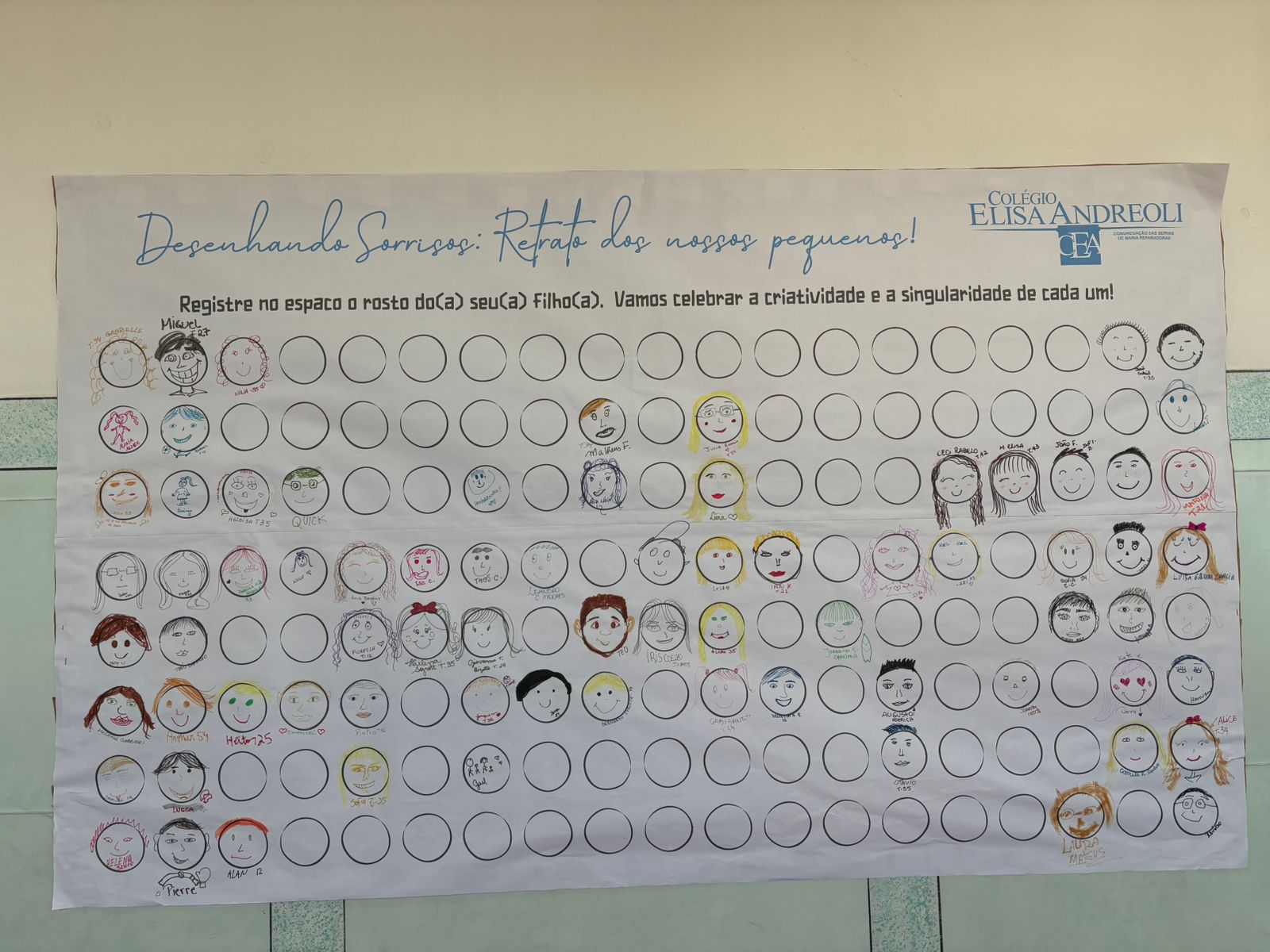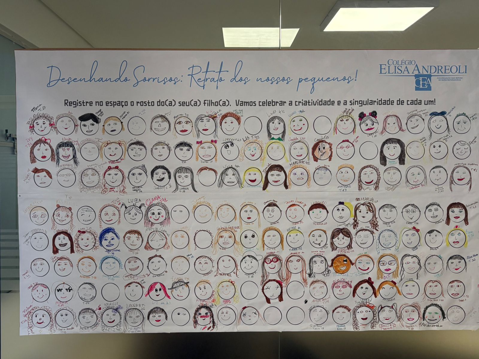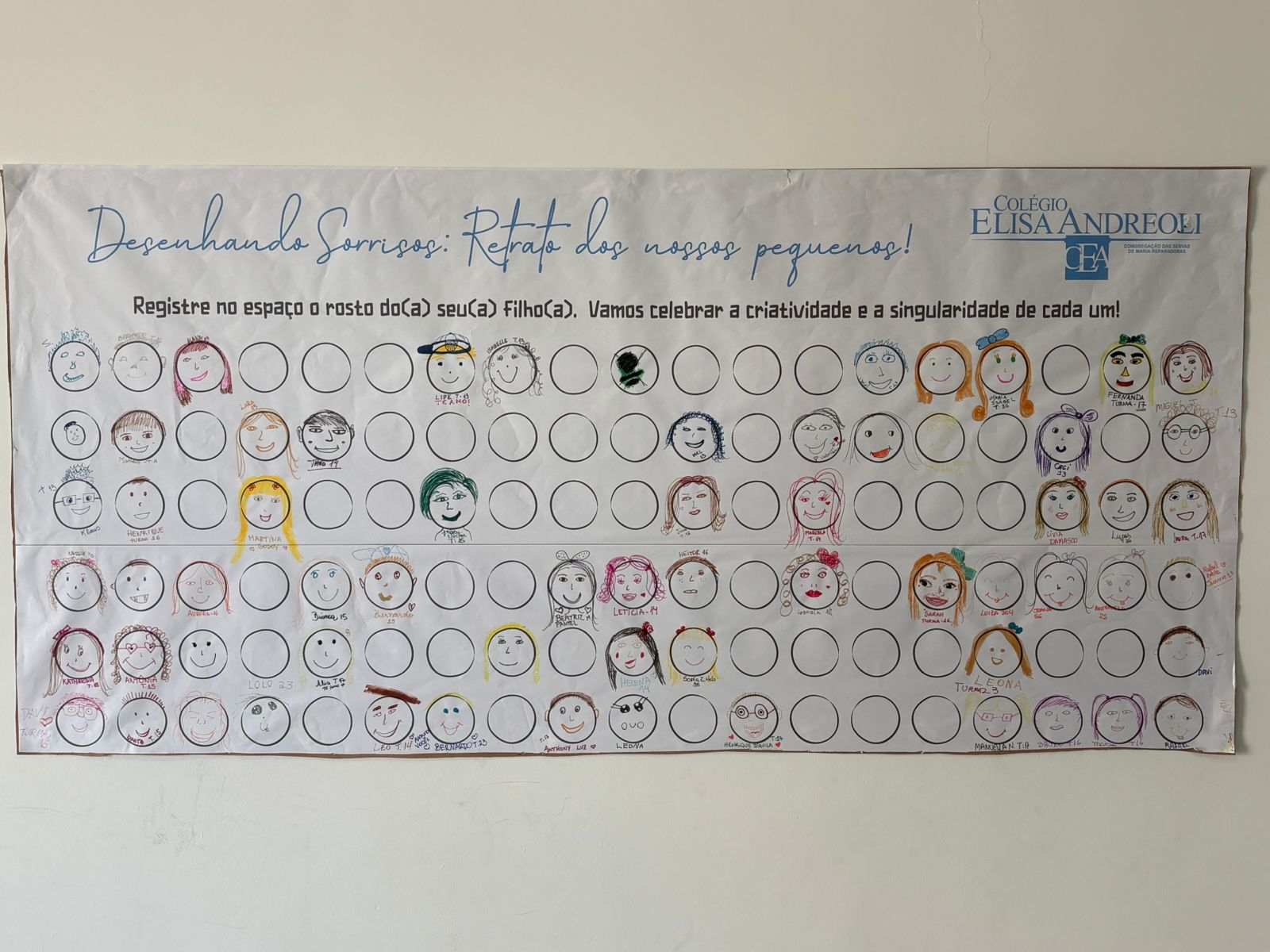 Na reunião de pais de 2026, o Colégio Elisa Andreoli preparou um espaço especial nos corredores com o painel “Desenhando Sorrisos: Retrato dos nossos pequenos”. Nele, os pais foram convidados a desenhar o rosto de seus filhos, celebrando a criatividade, a singularidade e o carinho que existe em cada família. Mais do que um simples desenho, a atividade representou um momento de conexão entre escola e família, permitindo que cada responsável expressasse, de forma simbólica, o olhar cheio de esperança com que desejam que seus filhos iniciem o novo ano letivo.