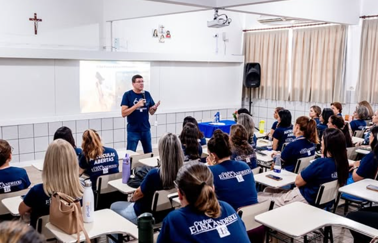 A Semana Pedagógica 2026 marcou o nosso retorno com propósito, reflexão e fortalecimento da missão educativa do colégio. Com formações conduzidas por profissionais como Jeciane Golinhaki, abordando “Conflitos na Escola: Fugir ou Enfrentar?”, e Juliana Miranda, trazendo a temática “Violência Contra a Mulher”, vivenciamos momentos profundos de aprendizado, diálogo e conscientização. Cada palestra ampliou nosso olhar sobre a construção de uma Cultura de Paz, o respeito e a responsabilidade coletiva no ambiente escolar.