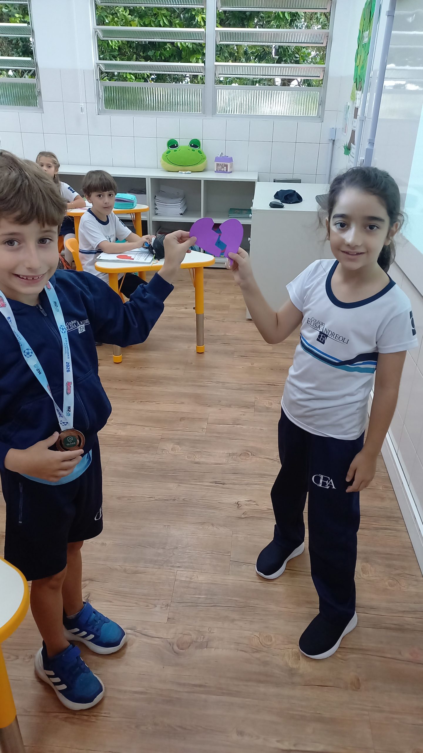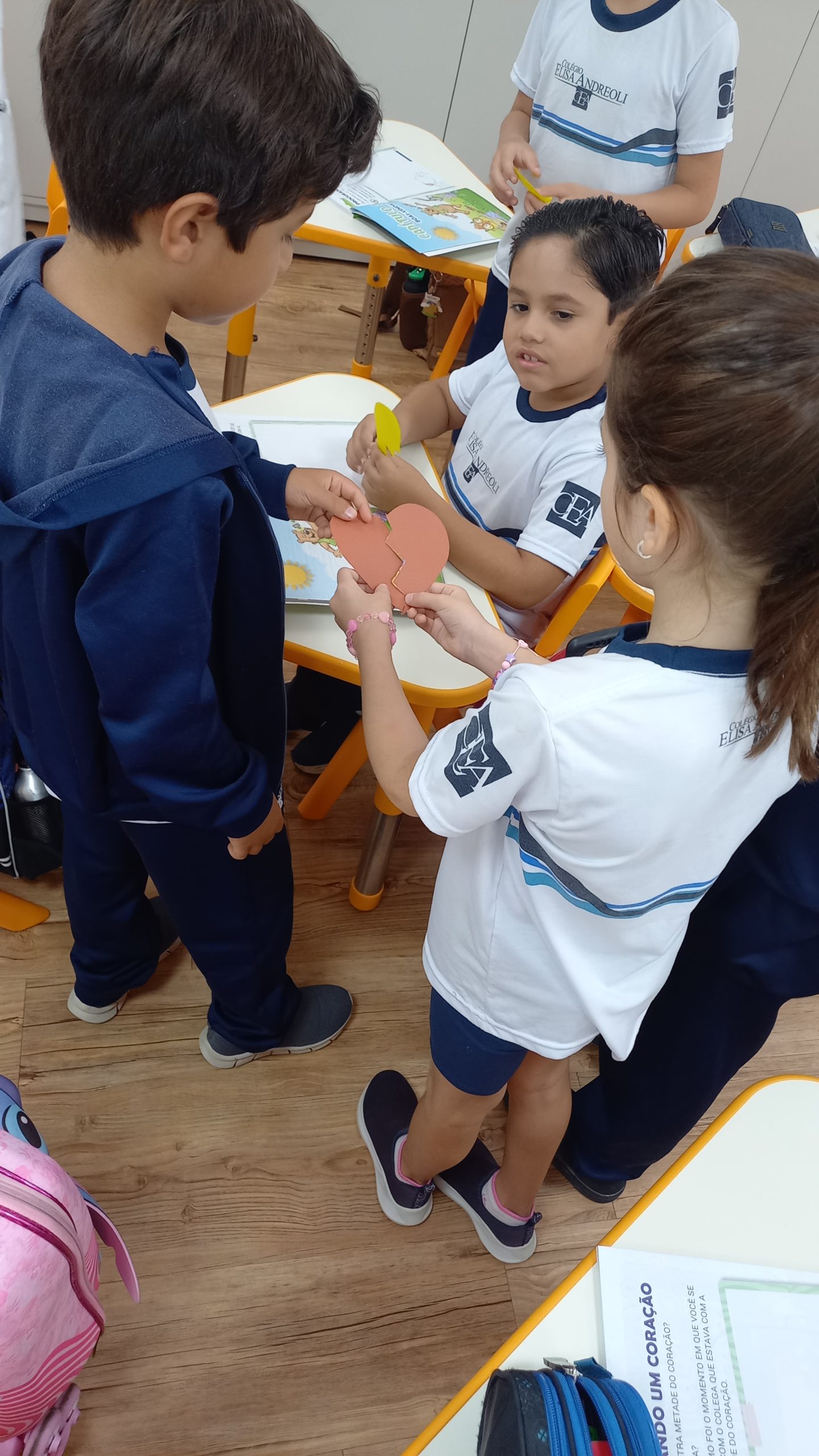 Essa atividade do programa O Líder em Mim propõe, de forma leve e significativa, o desenvolvimento das habilidades socioemocionais por meio da interação entre os alunos. Ao receberem metades de um coração, eles precisam circular, se comunicar e observar o outro até encontrar quem completa a sua parte, vivenciando na prática a importância da empatia, da cooperação e do respeito. Esse momento vai além da brincadeira, pois fortalece os vínculos, estimula o sentimento de pertencimento e mostra que cada um tem um papel essencial dentro do grupo. Assim, com as turmas 21 e 23, a atividade reforça que juntos somos mais fortes e que as conexões que construímos fazem toda a diferença no ambiente escolar.